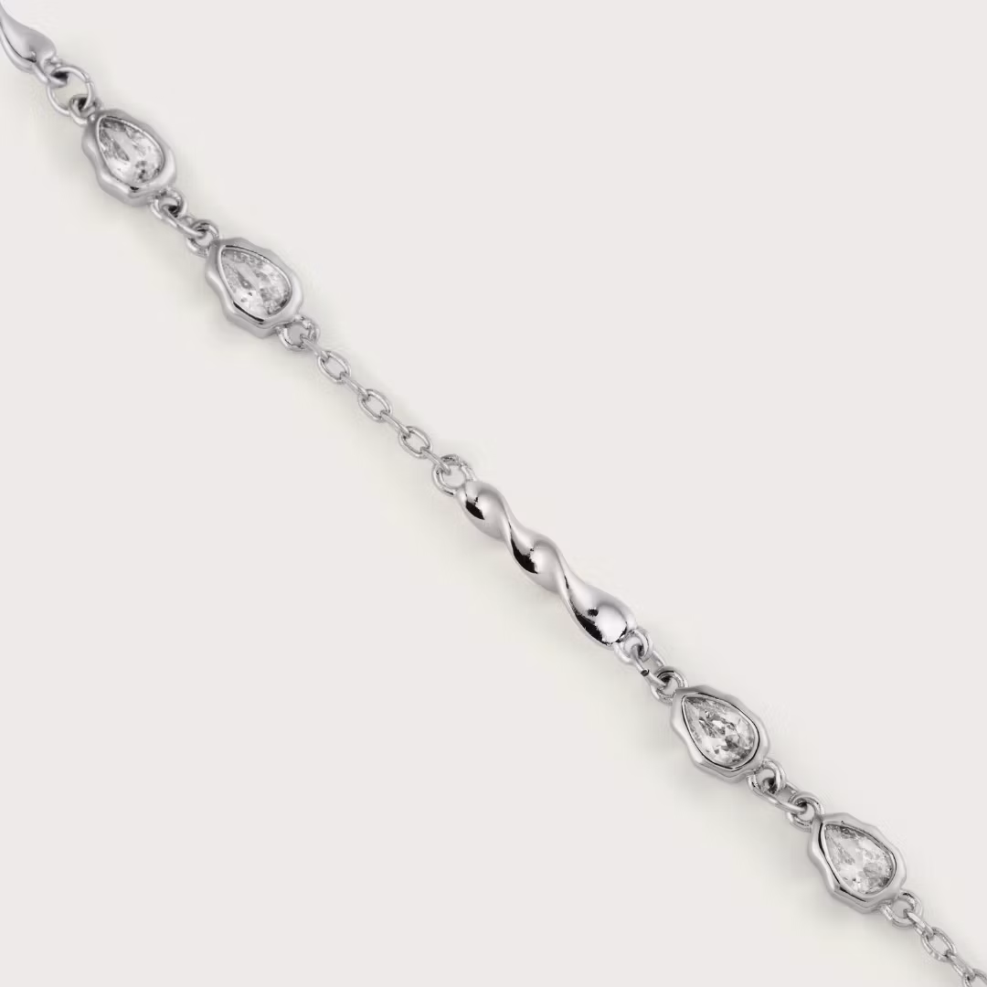 Twistade länkar och zirkoner i en ren, minimalistisk design. Små detaljer med stor effekt.