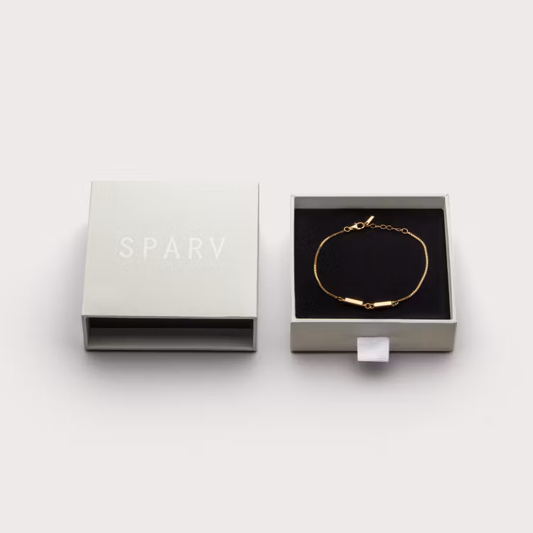 Linked kommer i två utföranden: guldplätering (18K) och silver. Linked skapas med nickelfritt och högkvalitativt 925 sterling silver. Våra guldpläterade smycken har en extra tjock plätering av 18K som är gjord för att hålla över tid. Varsamt förpackade i askar av återvunnet och FSC märkt papper.