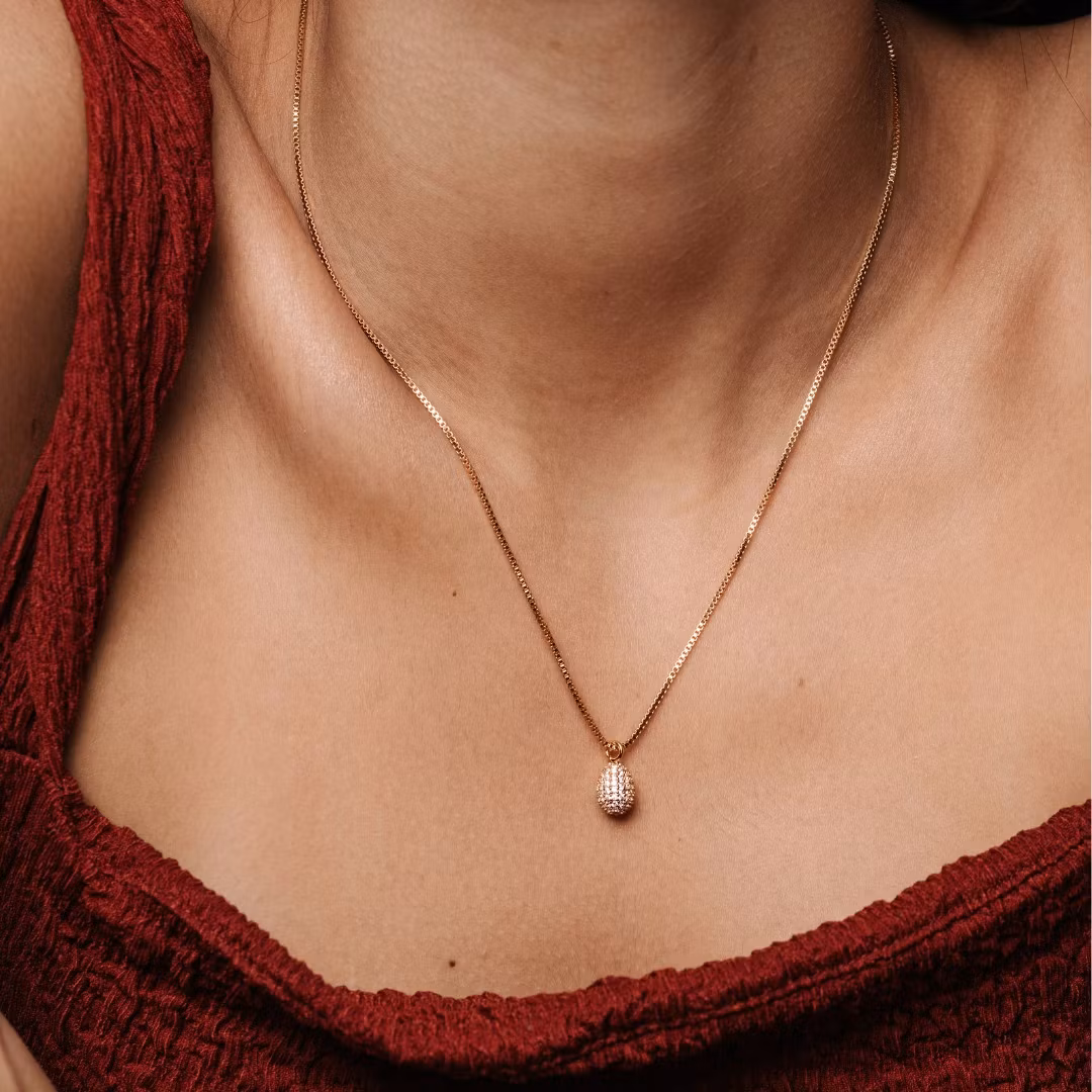 Vårt droppformade halsband med pavé-stenar, perfekt för att lyfta din look och addera det extra till vilken outfit som helst. Perfekt på dejt eller andra firanden.
