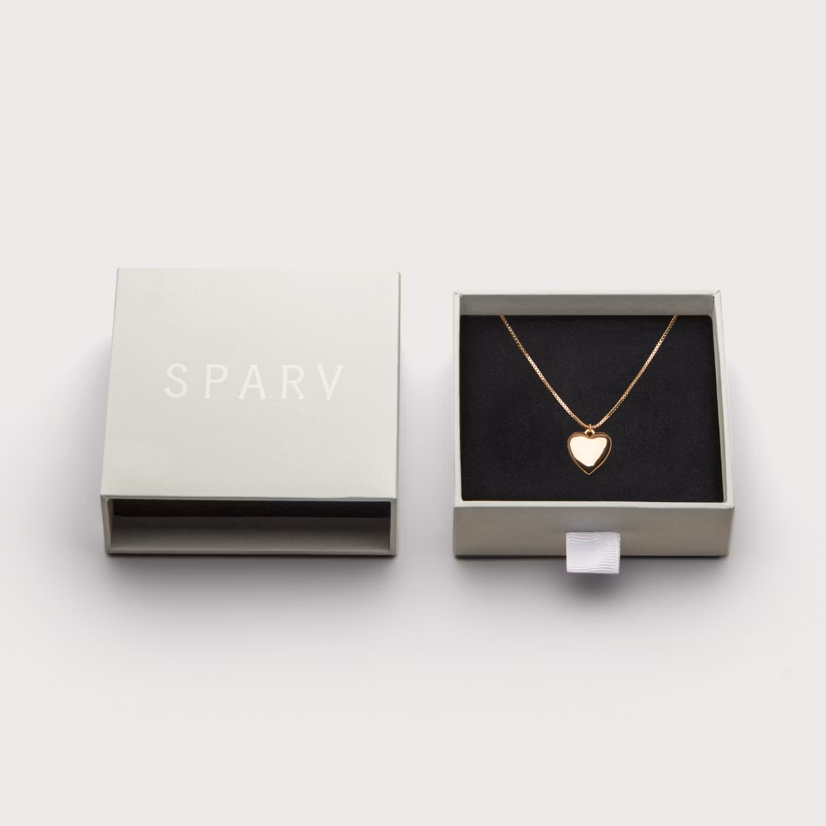 Mellow Heart kommer i två utföranden: guldplätering (18K) och silverpläterad mässing. Alla smycken är nickelfria och våra guldpläterade smycken har en extra tjock plätering av 18K som är gjord för att hålla över tid. Varsamt förpackade i askar av återvunnet och FSC märkt papper.
