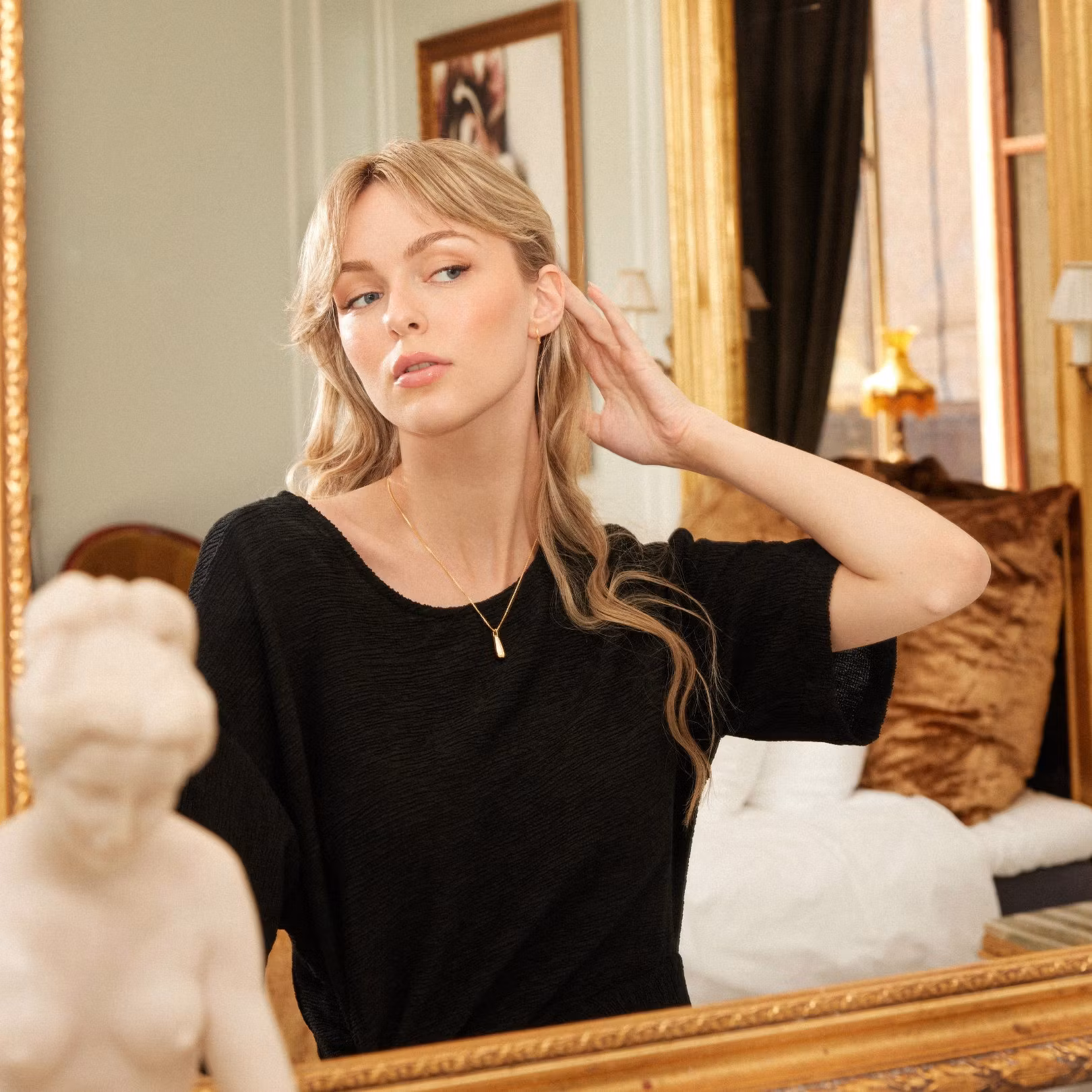 Fånga kvällens mystik med vårt tidlösa halsband Noir som adderar något unikt oavsett outfit eller tillfälle.