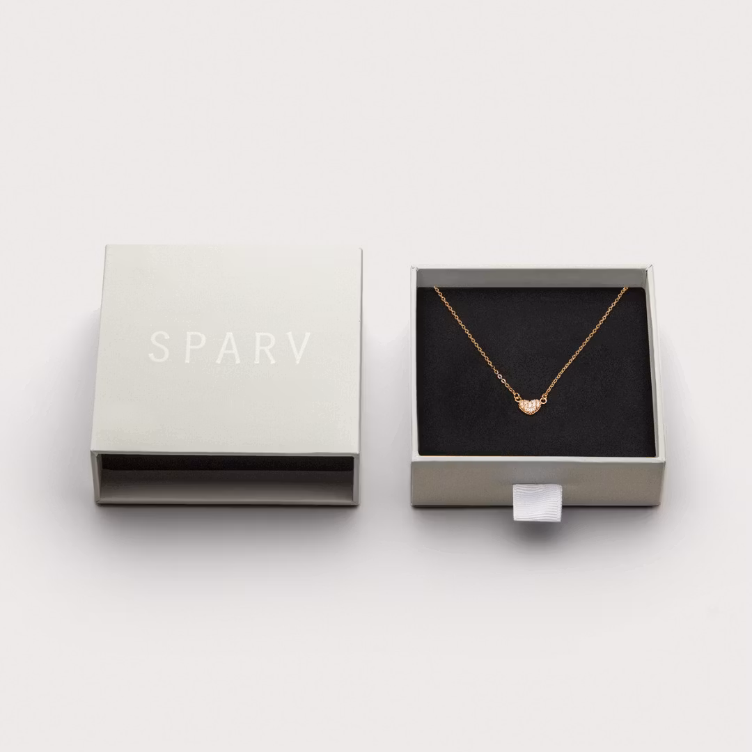 One and only kommer i två utföranden: guldplätering (18K) och silverpläterad mässing. Alla smycken är nickelfria och våra guldpläterade smycken har en extra tjock plätering av 18K som är gjord för att hålla över tid. Varsamt förpackade i askar av återvunnet och FSC märkt papper.