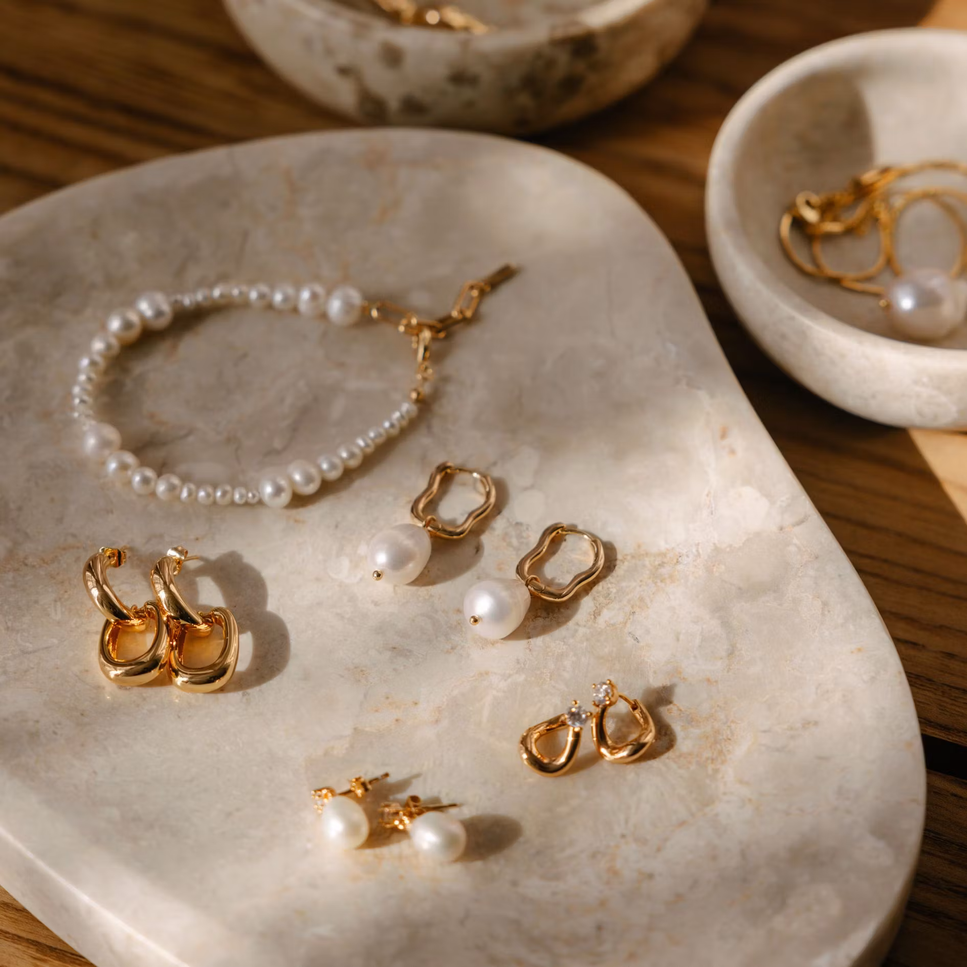 First Thing örhängen säljs i par och kommer i två utföranden: guldplätering (18K) och silverpläterad mässing. Alla smycken är nickelfria och våra guldpläterade smycken har en extra tjock plätering av 18K som är gjord för att hålla över tid. Varsamt förpackade i askar av återvunnet och FSC märkt papper.