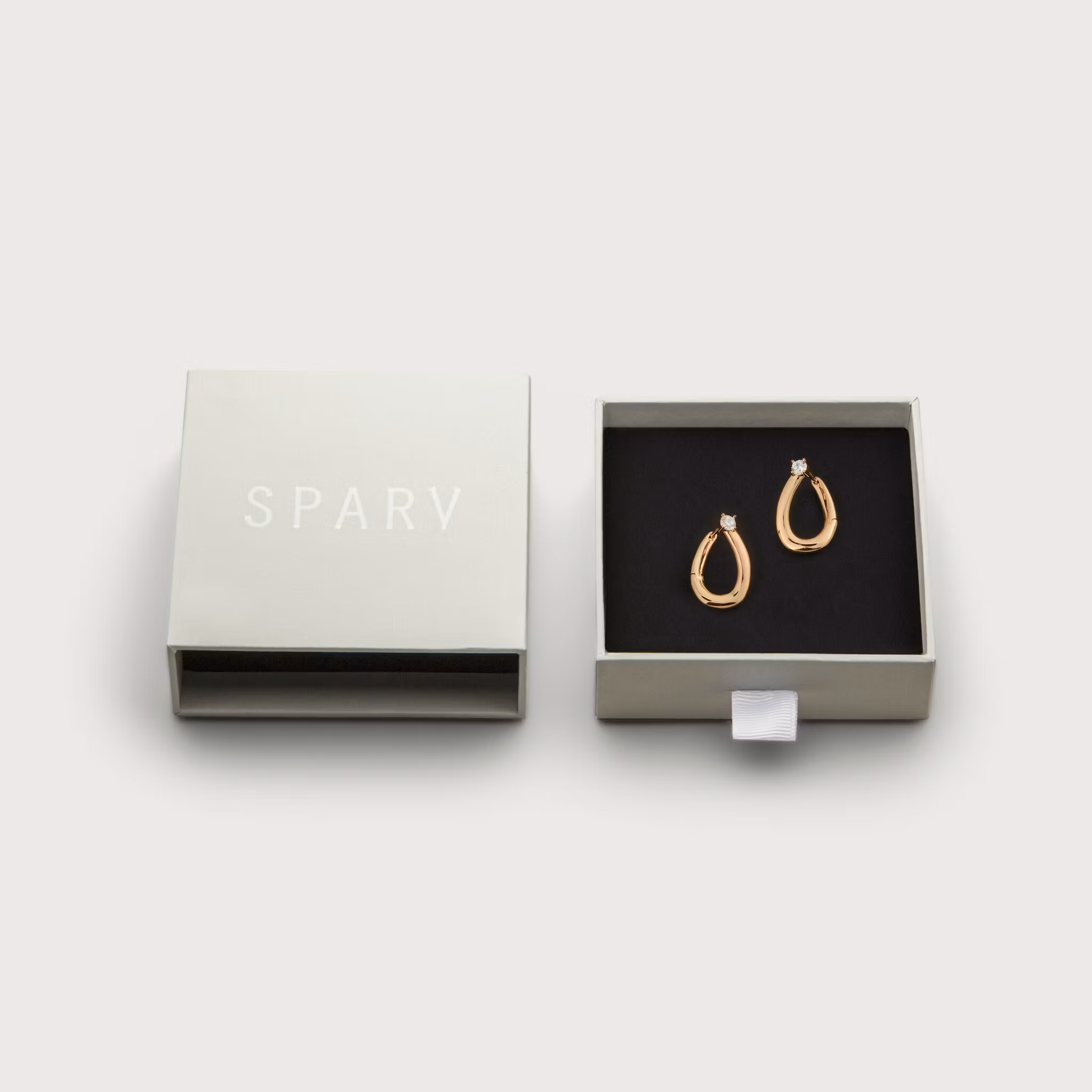 Rise örhängen säljs i par och kommer i två utföranden: guldplätering (18K) och silverpläterad mässing. Alla smycken är nickelfria och våra guldpläterade smycken har en extra tjock plätering av 18K som är gjord för att hålla över tid. Varsamt förpackade i askar av återvunnet och FSC märkt papper.