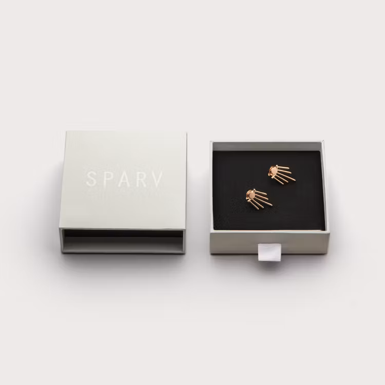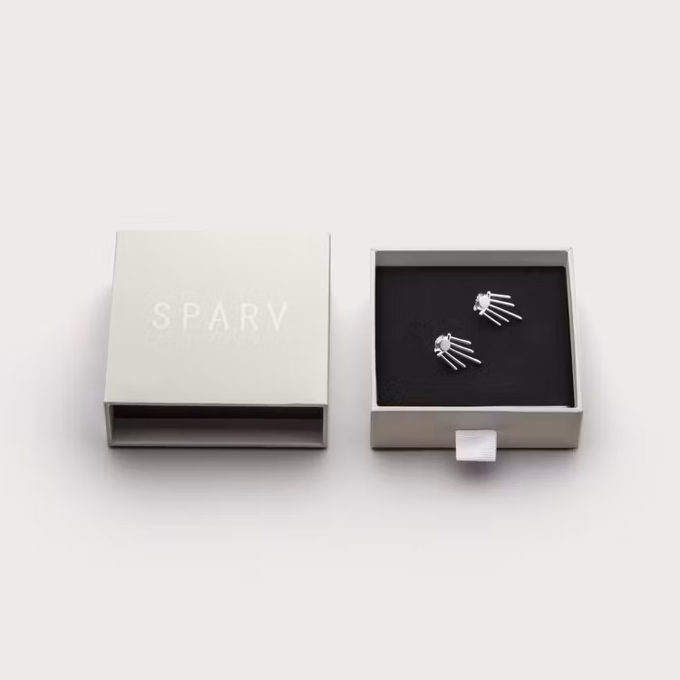 Twisted säljs i par och kommer i två utföranden: guldplätering (18K) och silverpläterad mässing. Alla smycken är nickelfria och våra guldpläterade smycken har en extra tjock plätering av 18K som är gjord för att hålla över tid. Varsamt förpackade i askar av återvunnet och FSC märkt papper.